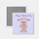 Un joli design avec un petit nounours marron tenant un coeur bleu avec un arc rose. Une bannière avec rubans roses et coeurs roses au-dessus de lui.