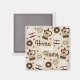 Aimant "Home sweet Home" avec mignonne tasse de café à vapeur illustrée et pot de café assorti décoré de coeurs et de beignets.
