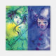 Coloré, lunatique, vibrant, portraits de clowns artistiques, aquarelles dans, violet, fuchsia, rose, rouge, jaune, bleu, vert couleurs inspirées du Carnaval de Venise.