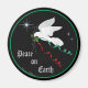 Éclaircissez votre maison ou votre bureau avec ce "Un de type" Aimant Réfrigérateur! Doté d'une colombe blanche sereine volant parmi les étoiles portant une branche d'olivier avec des rubans rouges et verts... Répandre "La Paix Sur Terre" ! C'est un Art Design original de l'artiste Kerry Miller.