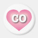 Cet aimant présente un coeur rose calme, cool et recueilli, avec un centre lavé en blanc contenant les lettres coques supérieures CO, gras et blanches, l'abréviation officielle du Colorado, l'état centenaire.