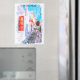 Magnet Mykonos Greece montrant l'architecture unique de l'île grecque dans la mer Méditerranée. Grand souvenir de voyage et cadeau pour chaque touriste. Achetez Maintenant.