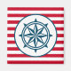 Design nautique avec décoration de boussole sur arrière - plan rayé rouge et blanc