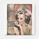 Peinture de Marilyn aux lèvres rouges sur timbre vintage