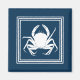 Design à thème aquatique avec décoration de crabe en carrés rayés sur arrière - plan bleu