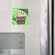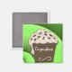 Un aimant amusant avec un cupcake mocha avec des arrosages de chocolat sur un arrière - plan vert ombragé.