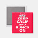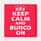 Conserver le calme et Bunco Sur le design graphique amusant. Grand cadeau ou prix pour votre prochain événement Bunco. En vedette est une couronne et trois dés.