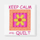 Montrez votre amour de la courtepointe avec ce bloc de courtepointe amusant et coloré qui proclame "Conserver le calme et la courtepointe". Ce design est original de l'art de la courtepointe avec un bloc de patchwork de fleurs appliqué coloré. Le mot "courtepointe" est facile à changer pour un autre mot de votre choix. Le design des courtepointes est dans des couleurs vives et dynamiques d'orange, de jaune et de rose pour une belle palette de couleurs. Entièrement personnalisable pour personnaliser. L'art de la courtepointe est l'art original de Phyllis Dobbs, concepteur de tissus et de courtepointes. Cet art est disponible sur d'autres produits et dans plusieurs arrière - plans de couleur et est également disponible sur plus Garder Calm produits avec différentes surfaces composées. Plus de produits sont disponibles dans Phyllis' BusinessWithFlair store.