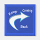 Aimant avec Continuez à revenir écrit sur couleur bleu velouté arrière - plan et flèche pointant comme si.pour montrer la voie à revenir..