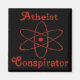 Mettez un visage sur l'athéisme et aussi moquez-vous de ceux qui prétendent que c'est une conspiration avec cette conception d'un symbole atomique et les mots "Conspirateur athée". En rouge avec des reflets noirs.