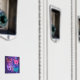 4 illustrations différentes de visages de chats cool dans l'espace. Un chat porte des teintes cool tandis que les autres ont les yeux fermés et ont l'air détendu, l'un porte une cravate arc. Ces chats sont posés sur un arrière - plan de l'espace avec des couleurs vives et beaucoup d'étoiles brillantes scintillantes dans l'arrière - plan.