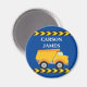 Aimant de camion de construction sur mesure cool pour un enfant qui aime les véhicules de construction jaunes et les magnets bleus. Conception de véhicule amusant pour un petit garçon qui aime les voitures et les camions. Customisez avec le nom de votre enfant sous le ruban de prudence noir et jaune.
