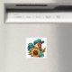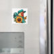 Illustration colorée d'un coq portant un casquette de cowboy turquoise entouré de fleurs turquoise et de tournesols luxuriants, mêlant charme rural et flair artistique.