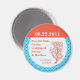 Moderne et élégant enregistrer l'aimant de date. Idéal pour un thème marin ou nautique. Comprend un corail rouge sur un arrière - plan bleu clair et une bordure motif. Corail et couleur turquoise. Branché mais élégant. Ajoutez votre propre libellé. Peut également être customisé pour une fête d'anniversaire ou un événement similaire. Invitation correspondante, timbre postal, sceau d'enveloppe, autocollant de faveur de la partie, classeur de planification de mariage, et d'autres produits disponibles dans ce magasin.