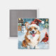 Ce design festif reflète l'esprit joyeux de la période des fêtes, avec un adorable petit portant un chapeau de Père Noël. Le chien est niché dans un pays des merveilles hivernales, avec un bonhomme de neige, un sapin de Noël décoré et des cadeaux joliment emballés. Les flocons de neige tombent doucement, ajoutant une touche magique à la scène, tandis que les couleurs vives des décorations de vacances créent une atmosphère chaleureuse et joyeuse.