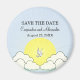 Élégant et charmant Match Made in Heaven Save the Date Magnet avec un ciel matinal avec soleil rayonnant niché dans des nuages moelleux et une jolie colombe blanche qui vole à travers. Cette unique sauvegarde de l'aimant de date est un choix sophistiqué pour laisser des amis et des parents éloignés savoir mettre de côté votre date de mariage choisi. Facile à customiser, il suffit d'ajouter les détails de votre mariage spécial dans les champs de texte fournis. Cliquez sur le bouton "Customiser" pour trouver d'autres options de personnalisation.
