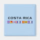 Affiche le nom du pays du Costa Rica en texte moderne noir et épelé avec des drapeaux colorés du signal nautique maritime ci-dessous. Beau souvenir pour les habitants du Costa Rica, San Jose, Amérique Centrale, touristes, écotouristes, visiteurs, bateaux de croisière passagers, plage et amoureux de l'eau, tels que les marins, les navigateurs, les plaisanciers, surfeurs, snorkeling. Ambiance nautique.