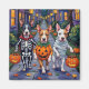 Les Taureaux adorables habillés de costumes d'Halloween ludiques portent des seaux citrouilles tout en faisant des tours ou en traitant sous le ciel illuminé par la lune. Ce design festif met en valeur la construction musculaire de la race, sa tête en forme d’oeuf distinctive et sa personnalité vivante, qui capte parfaitement l’atmosphère éffrayante et amusante de la nuit d’Halloween. Une charmante fête pour les amoureux de les chiens comme pour les fans d'Halloween.