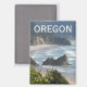 Aimant rectangulaire, frigo, qui présente l'image photo d'un littoral pittoresque de l'Oregon avec cheminée de mer. Un souvenir de voyage exceptionnel !