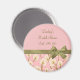 Montré ici comme une faveur de gardien pour une douche nuptiale, ce design floral moderne en rose et vert doux peut être personnalisé pour n'importe quel événement simplement en changeant les options de texte. Feuilles veinés sur un champ féminin de sorbet rose avec ruban de bouchon en soie. Parfait pour les cocktails, les mariages, les anniversaires, les baby showers, les anniversaires, les retraites ou les fêtes de fiançailles - ou tout événement spécial!