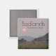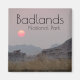Le soleil se couche dans le parc national des Badlands. Le soleil est une belle couleur rose avec un ciel clair violet.