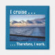 Un aimant montrant un coucher de soleil en mer express le sentiment de beaucoup qui vivent (et doivent donc travailler) de croisière. les mots, " Je croisière. . . par conséquent, je travaille. :"