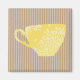Le design moderne et charmant est agrémenté d'un arrière - plan rayé brun clair et d'une tasse à café jaune ensoleillé au centre.