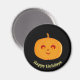 Mignonne face citrouille sur aimant rond arrière - plan noir. Le texte peut être personnalisé.