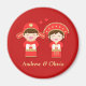 Le design est accompagné d'une caricature d'un garçon et d'une fille mignonnes vêtus d'un costume traditionnel chinois de mariée rouge et or brillant, et de vêtements de mariée avec des pièces de la tête. Le rouge est une couleur qui se dégage de la culture chinoise. Notez que l'or dont il est question ici est une correspondance étroite de la couleur et ne brille pas. Fait un cadeau cadeau de faveur de mariage unique ou juste pour une nouvelle utilisation personnelle! Personnalisez avec des noms.