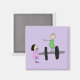 Ein Comic-Paar macht Sport, auf der Hantel auf lila Hintergrund.