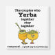 Aimant mignon YERBA MATÉ Couples pour les couples qui aiment boire du thé à base de plantes Yerba Mate - en particulier pour ses bienfaits pour la santé. Yerba Maté est une alternative culturelle populaire au café en Argentine et au Paraguay et gagne en popularité dans le monde entier. Il est bu d'une gourde, à l'aide d'une "paille" bombilla et est fait des feuilles du plante Ilex paraguariensis. Ce dessin montre une mignonne gourde caricature anthropomorphique embrassant un compagnon. L'expression dit LES COUPLES QUI YERBA RESTERONT ENSEMBLE. Cet aimant de couple Yerba ferait un grand cadeau aux couples - surtout à la Saint Valentin ou pour montrer leur engagement les uns envers les autres et à Yerba Maté.