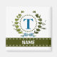 Une couronne de lierre délicate avec un ruban rayé bleu est superposée sur un fond blanc frais. La conception appropriée pour un mariage présente le monogramme "T" en bleu. L'aimant peut être personnalisé avec n'importe quel nom sur la bannière de ruban vert. Conseil de conception : pour la police présentée ici, utilisez des majuscules pour le nom.