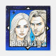 Art IA représentant une race extraterrestre masculine et féminine pléiadienne avec un fond étoilé.
