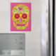 Le crâne de My Day of the Dead célèbre la vie et la mort avec un collage de mes peintures d'une grande variété de fleurs, et présente hibiscus, zinnnia, plumeria, et beaucoup d'autres.