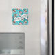 Un frigo design coloré pour les festivités du Jour des Morts, avec une variété de crânes de sucre décoratifs avec des accents de fleur et tourbillonnants sur un arrière - plan bleu turquoise texturé. La bannière et le calque de texte 'Feliz Dia de los Muertos' fournis peuvent être supprimés pour utiliser cette conception à d'autres occasions. Cherchez ID725 pour voir d'autres choix de couleurs et produits avec ce motif amusant.