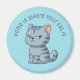 Aimant Cranky Grey Tabby Cat Custom Text Blue