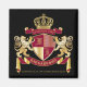 Créez votre propre armoiries, emblème, insignia ou crête de famille aristocratique avec ce magnifique escutcheon classique ou design de bouclier. Des motifs rouges pourpre ornent un bouclier surmonté d'une couronne dorée et flanqué d'un lion héraldique médiéval ou d'un griffon. Une bannière correspondant tient votre date de mariage personnalisée / date de naissance / slogan ou cri de bataille. Le bouclier a de l'espace pour vos initiales monographiques. La bannière inférieure porte votre nom de famille. Il y a aussi de l'espace ci-dessous pour votre citation, devise ou message préféré. Remplacez l'exemple de texte par le vôtre pour un cadeau personnalisé. Un design neutre pour les femmes qui conviendra aux familles, aux groupes, aux couples ou aux individus. Fait un cadeau merveilleux pour Mariage, Anniversaire, Anniversaire, Retraite, Promotion, Fête des Pères, Bachelor Party, Wedding shower, Graduation, Journée Internationale de l’Heraldique, Fêtes médiévales ou d’Imaginaire et autres occasions spéciales.