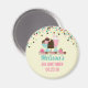 Un aimant de fête d'anniversaire. Personnalisé avec le nom et la date de l'événement. Conçu sur le thème de la crème glacée douce. Des confettis colorés parsemés le long du dessus et illustrés d'un bar à crème glacée au chocolat, de sundae à 3 boucles avec une cerise sur le dessus, et d'un flotteur de fraise avec de la crème fouettée. Petites fraises et cerises sur le fond. Arrière - plan jaune pâle. Rafraîchissant gâteries chaudes.