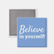 Citation de motivation, d'inspiration, "Croyez en vous !". Un aimant présentant des paroles de sagesse à vivre. La conception comporte une police blanche sur fond bleu qui peut être facilement personnalisée dans la section de l'outil de conception de Zazzle.