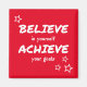 Cet aimant de motivation a un texte blanc sur un arrière - plan rouge vif pour vous inspirer à réussir. "CROYEZ en vous-même, ATTEIGNEZ vos objectifs."