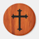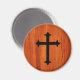 Cet élégant aimant chrétien classique présente une croix noire sur un arrière - plan motif de texture brune et boisée.
