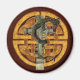 Un ornement celtique rond et traditionnel en tant qu'arrière - plan avec une croix de pierre celtique et un dragon oriental vert serpentant autour. Un design d'art imaginaire unique, et un grand cadeau pour les amateurs de dragonlovers et d'art imaginaire.