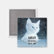 Un aimant avec une adorable photo d'un chaton blanc aux cheveux courts aux yeux bleu vif. En partant au loin. Des pattes croisées à la mode chatte typique.