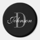 Custom black and white monogram large round fridge magnet. Elegant script typography template for name or surname. Classy gift idea for friends, family, coworker, clients, employee, customers, visitors, wedding guests etc. Add your own business name optionally.