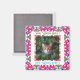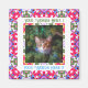 Custom Fun Jolly Rouge et Festive First Christmas Photo Cadre Magnet Carré. Un aimant frigo coloré et lumineux. Remplacez la photo et le texte par votre propre photo pour célébrer vos souvenirs de Yuletide. Offrez un cadeau de conservation de remplissage à votre famille et à vos proches. Dans les couleurs chaudes d'hiver de rouge, vert et orange et violet. Avec des touches de bleu glacé. Un cadeau abordable pour la famille et les meilleurs amis. Un cadre motif de bloc de couleurs joyeuses et vives borde l'image. Basé sur des motifs colorés et traditionnels. Utilisez comme un moyen bon marché de décorer la cuisine de Noël ou le bureau à la maison. Ayez un décor maximaliste de dopamine Noël!
