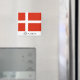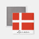 The national flag of Denmark, Dannebrog, is red with a white scandinavian cross that extends to the edges of the flag.