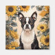 Aimant Cute Boston Terrier Yellow Sunflowers