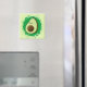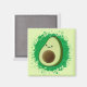 Cute avocat de type dessin animé. Magnets personnalisés. Design dessiné à la main avec des éclaboussures de peinture verte dans l'arrière - plan. Idée cadeau pour les personnes de tous âges qui aiment les avocats et les légumes mignons.