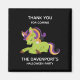 Halloween party thank you magnets with an image of a Frankenstein style unicorn. Purple and green colors. Spooky cute.