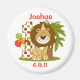 ÊTRE L'UN D'ENTRE EUX EST AMUSANT ! Design coloré de premier anniversaire avec un joli lion heureux portant un casquette de soirée à pois, des ballons, des palmiers de la jungle et un grand polka pointillé numéro 1. Personnalisez-le avec votre propre message personnalisé ! PinkInkArt original !